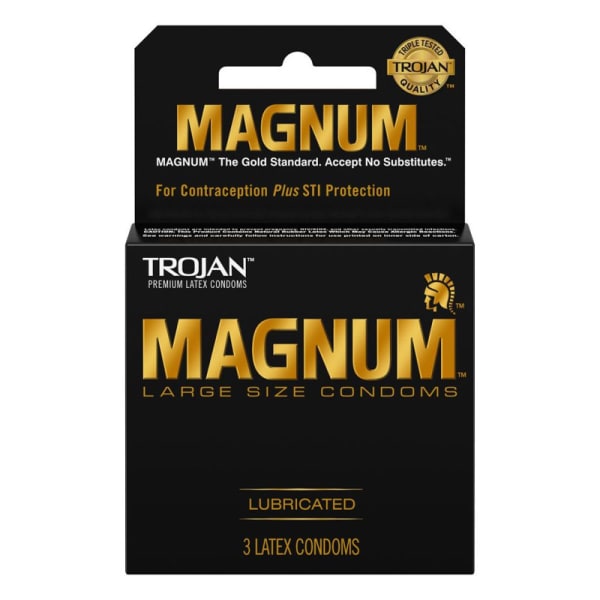 Enjoy larger than life pleasure. From the makers of Trojan comes Magnum Large Size Condoms, the best large condom in the unmistakable gold wrapper. These condoms are big on comfort, so you can enjoy your best sex. Do it up big.