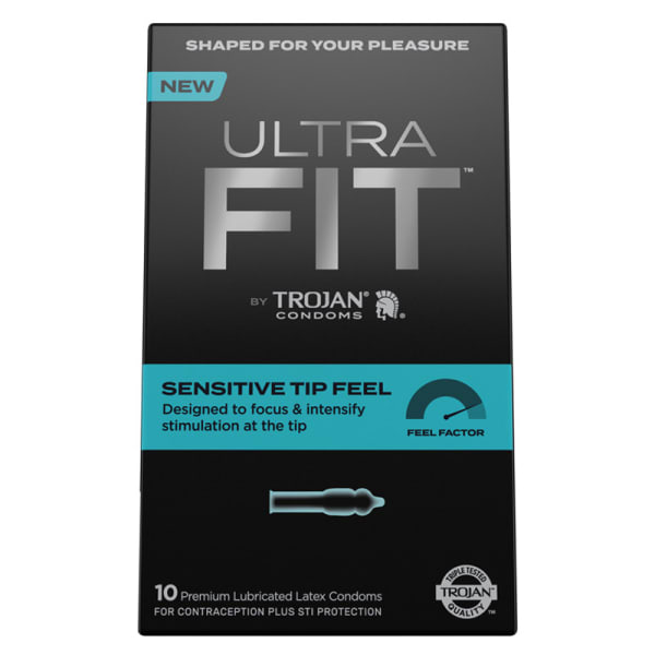 Find your feel. The Trojan Ultra Fit Sensitive Tip Feel condom features a shape that's contoured around the head for enhanced stimulation. Designed for intense feeling at the tip, this condom is tailored to those who want to really focus on pleasure.